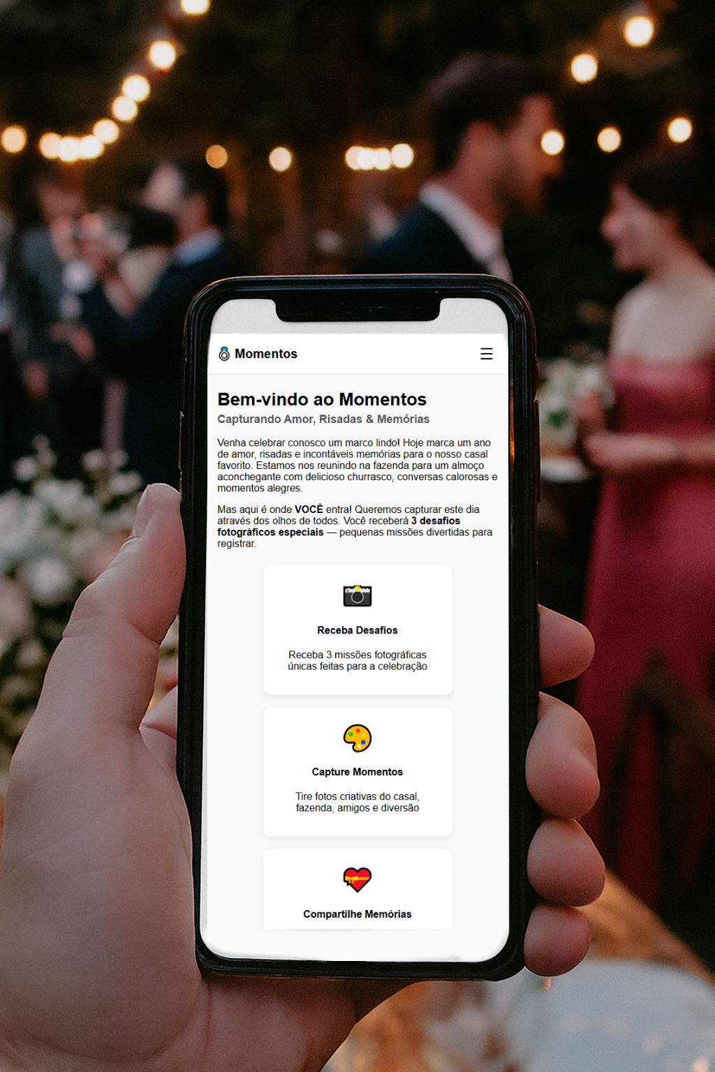 O resultado é uma experiência colaborativa e afetiva, que transforma todos em fotógrafos do evento.